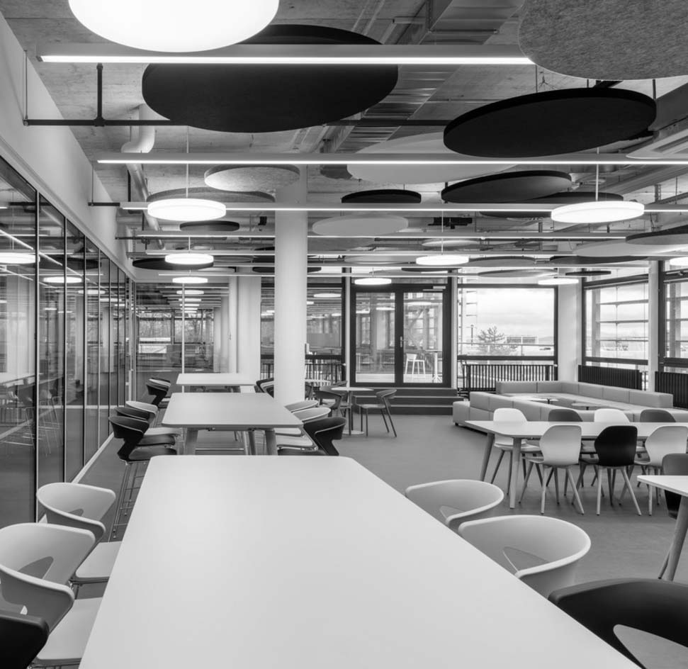 Transformation d'une usine en surfaces administratives et création d'espaces d'échange